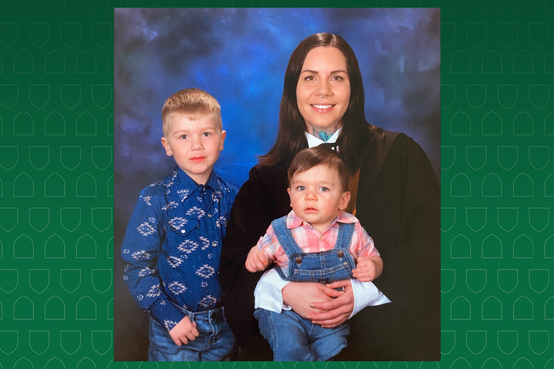By JAMES SHEWAGAJorie Halcro has raised the bar on motherhood and multitasking, not only surviving, but thriving, as she graduates near the top of the Class of 2023 in the College of Law at the University of Saskatchewan (USask). For Halcro, the extraordinary everyday effort required to raise her two boys Billy-Ray and Bobcat – who turn four and one this month – while completing law school helped keep life in perspective and empowered her dedication to her education.